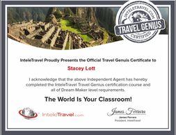 Stacey strives to provide quality service to her clients to make sure each travel booking is a phenomenal experience. Stacey continues to educate herself in all areas of travel including All-Inclusive Resort, Cruises, Railroad Train Rides, Land and Sea Cruises, Excursions, Group Travel, Rental Car, Hotel Packages, Vacation Rentals and much more.